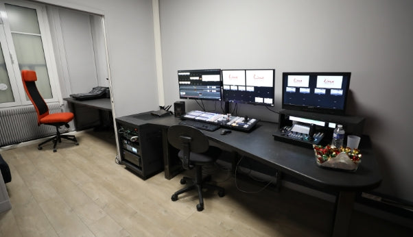 Notre studio offre polyvalence et performance. Entièrement modulable ; du mobilier à l’éclairage, des caméras aux décors… pour une émission qui vous ressemble. Ces infinies possibilités sont réalisables grâce à la proximité immédiate de Loca Images, disposant d’un des parcs de location les plus importants et surtout les plus éclectiques. De nombreuses solutions additionnelles sont, de ce fait, disponibles sur place (caméra supplémentaire, machinerie, prompteur, écrans…). De plus, un large choix de configuration et de forme de mobilier sont mis à votre disposition lors de vos évènements. Notre studio peut aussi se transformer en plateau virtuel ; Grace à la technologie les décors virtuels que nous sommes en mesure de vous proposer ou de fabriquer spécialement pour vous suivent les mouvements camera.